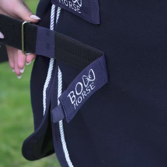 Snuggle meets style in every stitch with the Bow Horse super luxurious fleece show blanket. Designed for smart functionality, it helps regulate temperature and wick away moisture to keep your horse warm without overheating.